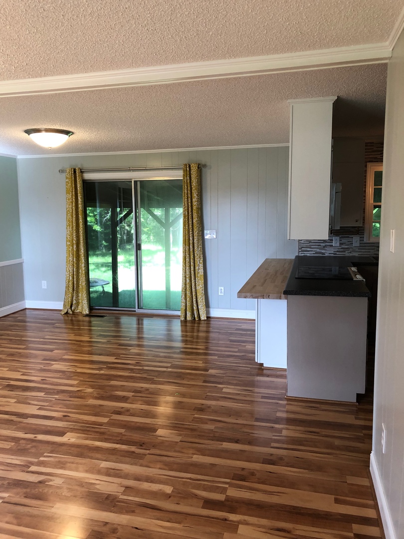 Must see! Country setting with screened in back porch, great backyard, garage, and outdoor storage closets. Beautifully remodeled kitchen with a refrigerator, stove, dishwasher and microwave. Laundry is equipped with a washer and dryer. Great living room with built in shelves and spacious bedrooms.